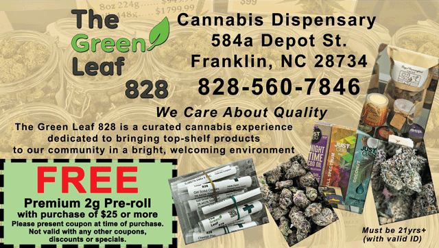 Welcome to The Green Leaf 828 Cannabis Dispensary, Franklin’s trusted, friendly, and local source for premium cannabis. We believe in taking a neighborly approach to wellness, providing a safe, comfortable, and education-driven space right here in Western North Carolina. Whether you're looking for relief, relaxation, or a new way to enjoy your downtime, stop by and experience the difference of a truly local, compassionate dispensary. I'd like to add at the end "Must be 21+ yrs of age with a valid ID to enter."